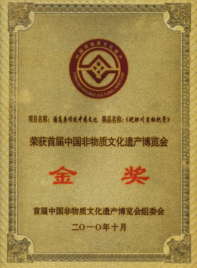 潘高壽傳統(tǒng)中藥文化,作為國(guó)家級(jí)非物質(zhì)文化遺產(chǎn)項(xiàng)目,代表廣東參加了首屆中國(guó)非物質(zhì)文化遺產(chǎn)博覽會(huì)。本屆博覽會(huì)是我國(guó)首次舉辦的非物質(zhì)文化遺產(chǎn)綜合性展會(huì),是全國(guó)非遺領(lǐng)域的一件盛事,是一屆圓滿成功、主題鮮明、內(nèi)容精彩、探索創(chuàng)新的博覽會(huì)。博覽會(huì)的“展品獎(jiǎng)”分金獎(jiǎng)、銀獎(jiǎng)和銅獎(jiǎng)。潘高壽“蛇膽川貝枇杷膏”、北京雕漆技藝“剔紅聽濤圖”中堂掛屏等37件作品榮獲金獎(jiǎng),山東魯繡發(fā)絲繡“鵲華秋色”、新疆維吾爾族樂(lè)器制作技藝“卡龍”等84件作品榮獲銀獎(jiǎng),西藏藏香制作技藝“直貢藏香”等69件作品榮獲銅獎(jiǎng)。