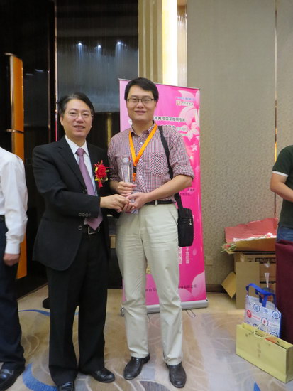 盧其福副總經(jīng)理、總工程師與二等獎獲獎?wù)呲w新廣教授合影