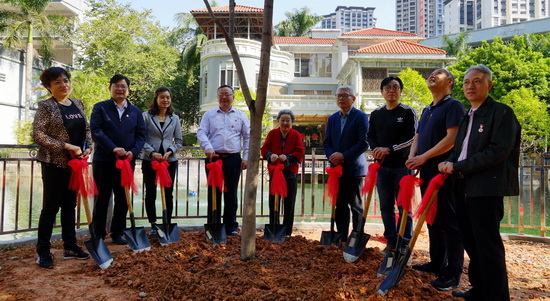 活動現(xiàn)場,郭蘭英老師與白云山潘高壽董事長、總經理楊東升,黨委書記蘇廣豐,紀委書記王靜文,副總經理劉永忠、盧其福,監(jiān)事會主席、工會主席陶躍良一同植下“無憂樹”。郭蘭英藝術發(fā)展基金會郭世珍副會長、郭文理事、歐陽海妮秘書,郭蘭英藝術學校校友會會長孫霏霏、劉小聰、副會長陳昊等共同參與。